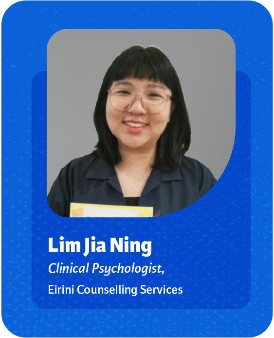 Jia Ning, a Master of Clinical Psychology graduate, specializes in providing individual therapy to individuals across all age groups, focusing on a supportive and collaborative therapeutic approach. With expertise in Acceptance Commitment Therapy and Cognitive Behavioral Therapy, she is committed to helping clients navigate their emotional experiences and lead more fulfilling lives. Currently serving as a Clinical Psychologist at Eirini Counselling Services since July 2023, Jia Ning conducts individual therapy sessions for both adults and children, alongside administering psychological assessments for children. Additionally, she shares her knowledge and expertise through workshops and talks, addressing topics such as mental illness, relational dysfunction, and emotional regulation to foster greater awareness and inclusion in the community.