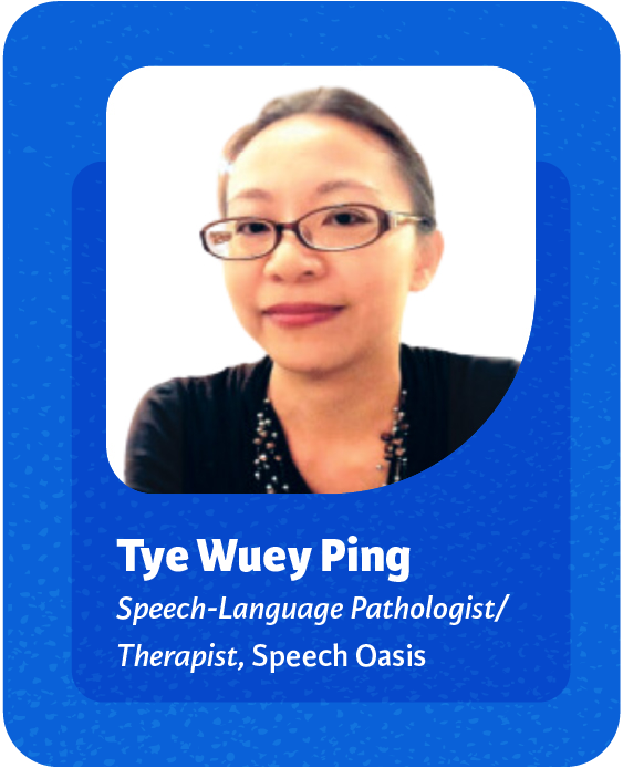 Ms Tye Wuey Ping is a Speech-Language Pathologist/Therapist with more than 24 years of experience. Before setting up her private practice – Speech Oasis Enterprise, in 2010, Wuey Ping worked in Sunway Medical Centre, heading the Speech and Hearing Department there. She currently works with children and teenagers with speech-language impairments related to conditions, such as developmental delay, autism spectrum disorder, and social communication disorder. She is a member of the Malaysian Association of Speech- Language & Hearing (MASH) and is a Hanen certified facilitator.